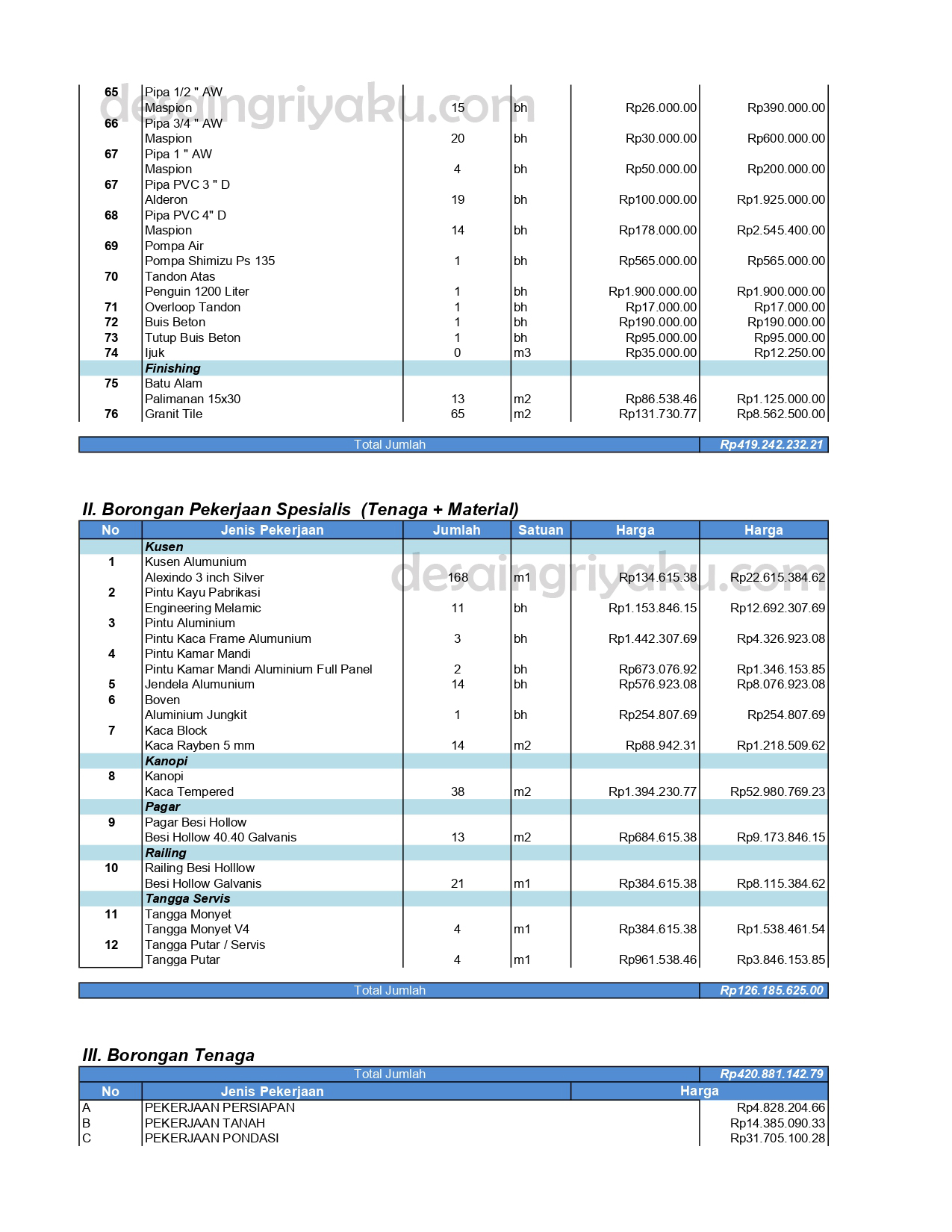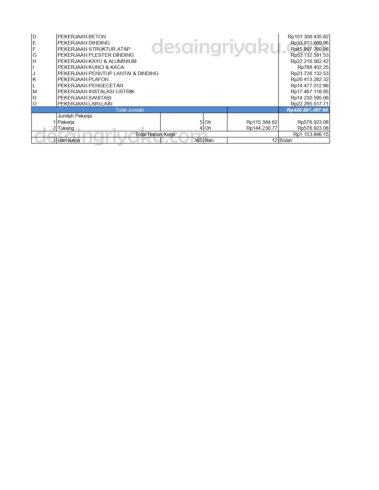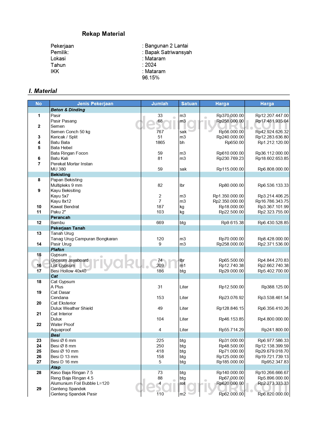 Berikut ini adalah contoh produk dokumen gambar kerja yang akan anda peroleh jika anda memilih paket 4 (gambar kerja lengkap & rab). Dokumen yang anda peroleh terdiri dari gambar arsitektural, struktur dan mekanikal elektrikal sesuai dengan list gambar dibawah ini. Dan juga berisi RAB(Rencana Anggaran Biaya) yang berfungsi sebagai patokan perkiraan biaya pembangunan.